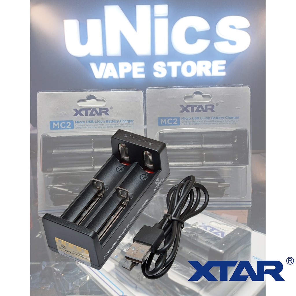 Charger vape xtar mc2. Charger usb cable user manual package. Capable of charging 2 cells at a time it is an inexpensive solution to the nightmare of having to wait for one battery to charge over and over again. Can fit up to 1x 26650 and other cells at the same time 0 5a charging speed per slot 500mah per hour can recharge over discharged batteries as with all our xtar chargers. Micro usb powered the mc2 can charge up to 2 batteries at the same time.